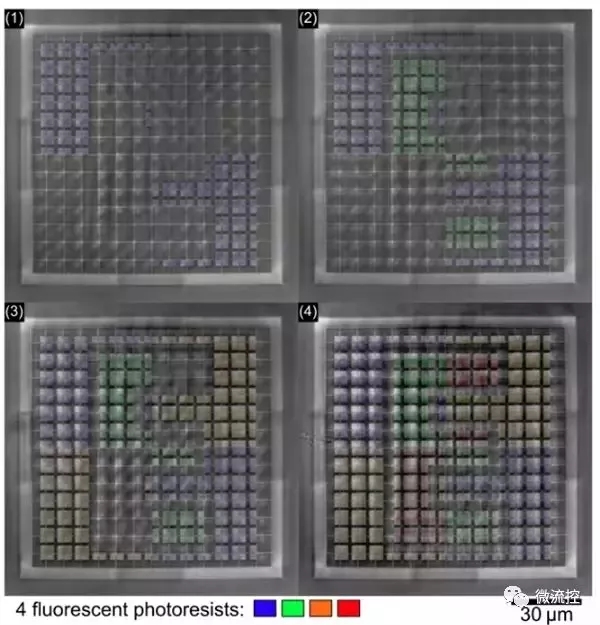 為了展示其功能,團隊3D打印了基于多種發射顏色的確定性微結構3D熒光安全特征。為了制造幾乎不可見的結構,他們在微流體系統中使用了“七種不同的液體:用于結構骨架的非熒光光刻膠,含有熒光半導體量子點的四種光刻膠和具有不同發光顏色的有機染料,以及兩種顯影劑(mr-Dev 600) “開發商是用來沖洗其他材料的溶劑。